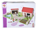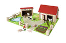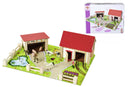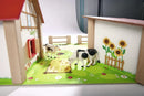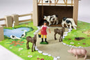 Placa de joaca cu dimensiunea de 36x51 cm creeaza o zona de joaca spatioasa. Fermierul si sotia fermierului locuiesc in ferma, iar animalele locuiesc intr-un grajd mare si confortabil. Ferma include gaste, vaci, porci si cai.