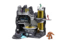 Pestera lui Batman include 6 nano figurine metalice de 4 cm si 1 figurina metalica medie, o platforma cu lumina, usa glisanta usoara si foaie de autocolante pentru decorare. Dimensiuni (L x L x A): 33 x 24 x 27 cm.