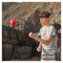 - Jocul include o bentita din material textil cu velcro (arici) la capete, care se fixeaza pe cap si de care este legata printr-un fir elastic o minge din spuma moale.