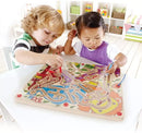 Dubleaza distractia. Doua baghete magnetice permit prietenilor sa alerge impreuna cu ele in jurul acestui labirint. Acest labirint compact este minunat pentru calatorii. Jucaria are un maner special, pentru a putea fi transportata usor, iar baghetele magnetice sunt prinse cu snur, pentru a nu se pierde. Jucariile sunt realizate din lemn, folosind materiale ecologice, vopsite in culori atragatoare cu vopsele nontoxice, care depasesc cele mai inalte si stricte standarde internationale de siguranta si calitate, precum EN71, ISO9001, ASTM F963 si altele. De multi ani, Hape a creat jucarii fantastice, de inalta calitate, folosind materiale ecologice si durabile, fiecare produs fiind atent proiectat pentru a stimula abilitatile senzoriale, fizice si emotionale.