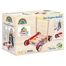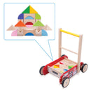 - Setul include: un carucior in forma de masinuta de pompieri, maner, 32 de blocuri din lemn (natur si colorate), suruburi.