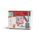 - Jocul contine: 1 cutie din carton gros cu capac (10.5 x 8 cm), 3 zaruri mari din lemn (3 x 3 cm), 6 table de joc din carton, formate din 2 parti (15 x 4 cm), 6 elefanti din carton.