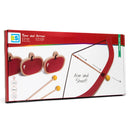 - Acest set de joaca cu arc si sageti de la BS Toys include: 1 arc din lemn, 3 sageti cu varfurile rotunjite, 3 tinte din lemn in forma de mar.