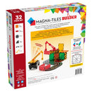 - Setul Magna-Tiles Builder contine 32 de piese: 16 patrate mici, 8 dreptunghiuri mici, 1 spinner, 4 sferturi de cerc, 1 sasiu cu roti, 2 macarale.