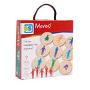 - Jocul contine: 18 piese rotunde din lemn cu diametrul de 7 cm, fiecare imprimata cu cate o miscare diferita.