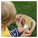 - Oglinda de la TickiT are un cadru din lemn de arbore de cauciuc natural cu manere usor de apucat si tinut de catre mainile copiilor, care incadreaza o oglinda concava pe o parte si convexa pe cealalta.