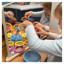 - Oglinda este ideala pentru jocul senzorial, care le va permite copiilor sa se autoexploreze, pentru a invata despre simetrie, reflectarea luminii si a culorilor, pentru a observa si inspecta indeaproape anumite materiale de joaca si obiecte interesante din mediul inconjurator, ca mic mediu de joaca unde se pot experimenta noi perspective asupra lumii sau pentru a fi folosita in jocul imaginativ ca un cadru pentru a crea scene fascinante si lumi in miniatura.