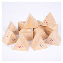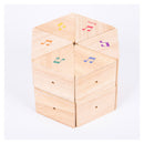 • Aceste prisme din lemn au un continut diferit in interior, astfel incat produc sunete ca de zdranganit diferite atunci cand sunt scuturate. Fiecare pereche are un sunet identic.