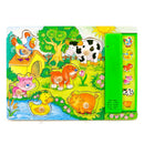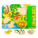 - Acest puzzle din lemn ce contine sase piese prevazute cu manere le va face cunostiinta celor mici cu sase dintre cele mai cunoscute animale de la ferma. Micutii vor fi imediat atrasi de fetele zambitoare ale animalelor dragute si vor fi fascinati de sunetele specifice acestora, care se vor auzi la o simpla apasare a butoanelor situate in marginea tablei. Ei vor familiariza repede cu aceste sunete si vor invata sa le imite.