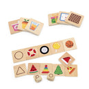 - Setul contine 35 de piese din lemn, dintre care 5 sunt imprimate cu forme geometrice si 30 de piese imprimate cu obiecte colorate. Fiecarei forme geometrice ii corespund cate 7 piese. De asemenea, este inclus un zar, pentru a crea jocuri si activitati distractive de potrivire.