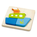 • Un puzzle in relief simplu cu piese atent finisate sub forma unui vaporas in culori luminoase, care le va capta atentia copiilor micuti.