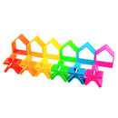 - Setul Friends & Houses, neon colors, contine 12 piese colorate in culori intense (rosu, portocaliu, galben, verde, albastru, roz): 6 omuleti si 6 casute.