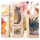 - Fiecare copil isi va putea personaliza blocurile transparente cu obiectele dorite, putand stoca in interior: margele, crengute, frunze, pene, jucarii mici, flori, scoici si multe altele.