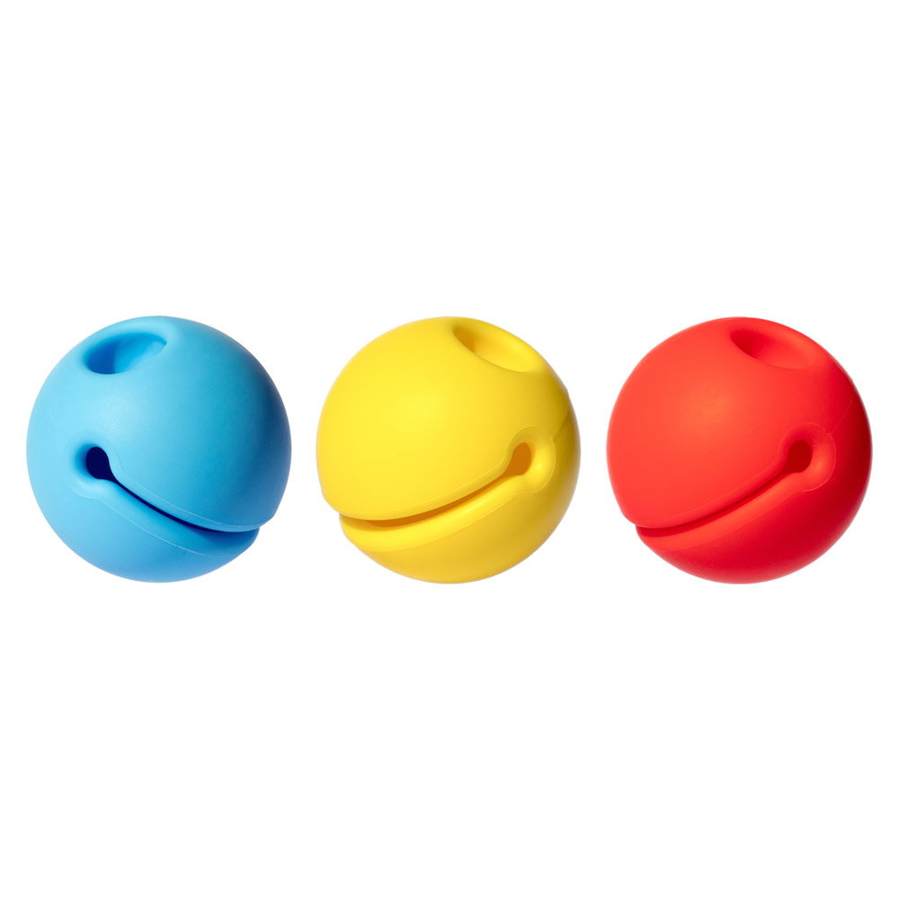 Simpatica mingiuta senzoriala Mox vine acum in set de trei bucati in culorile primare rosu, galben si albastru, pentru a spori distractia copiilor si a incuraja si mai mult explorarea si experimentarea, stimulandu-le imagina...