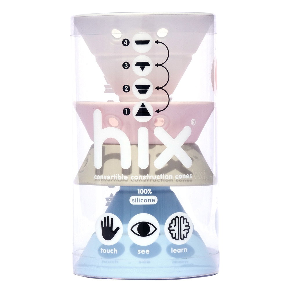 Hix pastel Colors este o jucarie de constructie noua, formata din patru conuri convertibile din cauciuc siliconic elastic. Fiecare con se transforma in patru forme de baza care pot fi stivuite si asezate intr-o multitudine d...
