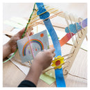 - Setul include 3 rame translucide (patrat, cerc, triunghi), fabricate din plastic reciclat, 3 bucati de sfoara si 5 carduri pentru inspiratie creativa, imprimate fata-verso.