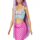 Barbie papusa sirena cu par mov si coada roz