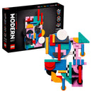 Exploreaza-ti creativitatea cu acest kit de construit LEGO® Arta Moderna (31210). Fa o lucrare de arta abstracta moderna personalizata asambland o colectie de elemente intr-o varietate de culori si forme, incluzand dreptunghiuri, triunghiuri si cercuri. Nu exista feluri gresite de a crea: pur si simplu experimenteaza si distreaza-te cu posibilitatile nelimitate. E imposibil sa faci o greseala! Instructiunile de construit incluse nu sunt acolo pentru a-ti spune ce sa faci, ci mai degraba sa te inspire cu imagini de modele si sugestii pentru calatoria ta artistica. Seturile LEGO® Art ofera constructorilor adulti o sansa de a crea propria lor lucrare de arta de perete premium in timp ce se bucura de o experienta de construit captivanta si satisfacatoare. Seturile sunt destinate oricui cu o pasiune pentru muzica, arta sau filme. Cand ai terminat, etaleaza-ti creatia pe peretele tau folosind un element de agatat.