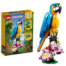 Mici constructori si fani pasionati ai animalelor in varsta de 7+ ani pot patrunde in adancul padurii tropicale pentru povesti pline de actiune cu acest set de construit LEGO Creator 3-in-1 Papagal exotic (31136). Contine un papagal colorat care isi poate roti complet corpul in timp ce sta pe o creanga si sa isi miste aripile si coada. Copiii au ocazia de a construi 3 animale exotice diferite cu acest fantastic set LEGO 3-in-1. Pot construi un papagal colorat cocotat pe o creanga sau sa il reconstruiasca intr-un peste care inoata pe fundul mari sau o broscuta indrazneata care isi poate misca picioarele. Descarca aplicatia LEGO Builder si patrunde intr-o noua lume a constructiei distractive unde copiii pot mari si roti modelele in 3D, sa salveze seturi si sa urmareasca progresul. Animale exotice de jucarie 3-in-1 - Copii in varsta de 7+ ani pot patrunde in padurea tropicala cu setul LEGO Creator 3-in-1 Papagal exotic (31136), care contine un papagal, un peste si o broscuta. Posibilitati de joc nelimitate - Fanii animalelor pot interpreta diferite povesti cu papagalul cocotat intr-un copac, un peste care inoata pe fundul marii si o broscuta jucausa. Modele articulate - Papagalul se poate roti pe creanga si sa isi miste aripile si coada, pestele isi poate ridica aripioarele si sa fie miscat in sus si in jos, iar broscuta are picioare articulate. O constructie simpla - Acest set din 253 de piese ofera micilor constructori de 7+ ani o experienta de construit si jucat satisfacatoare si poate fi daruit drept o recompensa sau un cadou aniversar. Joaca in calatorii - Masurand peste 22 cm inaltime, 11 cm lungime si 12 cm latime, papagalul este la o dimensiune portabila pentru a fi transporta de copii oriunde calatoresc. Mai multa distractie 3-in-1 - Exploreaza si alte seturi din tema LEGO Creator 3-in-1, inclusiv seturile Naveta spatiala (31134), La plaja cu rulota (31138) si Casa primitoare (31139).