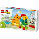 Cunosti un copilas care adora joaca creativa si jucarii cu tematica naturii? Introdu-i pe copiii mici in varsta de 18 luni sau mai mari in joaca de potrivire a culorilor cu setul LEGO DUPLO Tren cu animale (10412). Aceasta jucarie educationala pentru prescolari contine 4 animale adorabile de construit - un cocos, un cal, un miel si o vaca - care ii transporta pe micuti intr-o calatorie de joaca pe roluri distractiva. Copiii mici isi dezvolta abilitatile de rezolvare a problemelor in timp ce urmaresc cartonasele si construiesc animalele pe care le potrivesc cu vagoanele trenului in functie culori. Acest vehicul de jucarie mai include 2 caramizi extra care ofera copiilor ocazia sa isi exprime creativitatea in timp ce construiesc si reconstruiesc animalele in feluri noi, inventate de ei. Functiile jucause, cum ar fi gatul flexibil al cocosului si vagoanele de tren care se pot conecta, dezvolta abilitatile motorii ale copiilor. Jucariile LEGO DUPLO cu animale pentru prescolari pun distractia fara limite, exprimarea de sine si explorarea in mainile micutilor, impartasind alaturi de parintii momente pretioase de dezvoltare.