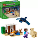 Acest cadou reconfigurabil bun pentru joaca pe roluri pentru baieti si fete in varsta de la 6 ani in sus prezinta 3 figurine LEGO Minecraft, inclusiv pe Steve, plus o coliba Minecraft intr-un biom desertic. Setul include elemente Minecraft iconice, cum ar fi o masa de faurit, un foc de tabara si diverse piese de peisaj desertic. Un cadou grozav pentru orice fan Minecraft, setul inspira aventuri creative si actiuni cu batalii cand o Fantoma cu aripi mobile zboara peste baza sa o atace. Aceasta jucarie prezinta o expresie faciala noua pentru Steve si prima aparitiei a unui Baby Camel intr-un set LEGO Minecraft. Aceasta idee de cadou pentru copii si gameri este compatibila cu alte seturi de joaca LEGO Minecraft (vandute separat).