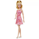Barbie papusa barbie fashionista blonda cu parul prins in coada si rochie cu floricele