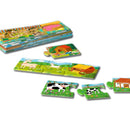 A játék célja az összetartozó elemek megkeresése és összeillesztése. Eközben a gyermek játékos formában megismeri a leggyakrabban előforduló háziállatokat, azok kicsinyeit, valamint lakóhelyüket. Azzal, hogy megnevezi, amit a képen lát, bővül a szókincse, javul a beszédkészsége. Meséltesse el a gyermekkel, melyik állat milyen (szomorú, vidám, mérges), mit eszik, merre szalad, stb.