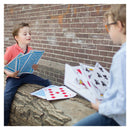 - Un pachet de 54 de carti de joc gigant, format A4 (21 x 29 cm), imprimate cu modele mari, intens si luminos colorate.