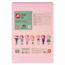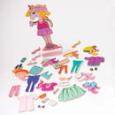 Inclus in pachet: 1 papusa unicorn, 1 papusa unicorn din lemn magnetic, 1 unicorn magnetic din lemn, 1 baza magnetica din lemn, 46 de magneti din lemn pentru haine si accesorii.