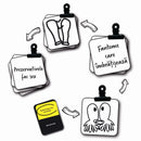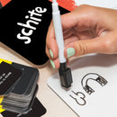 Jocul include: File de design reutilizabile care se fixeaza una peste alta cu ajutorul unor clipsuri speciale. Markere de stergere. Carti cu peste 200 de subiecte uimitoare de desenat. File pentru numararea punctelor. Setul contine: -6 cartonase numerotate si 6 clipsuri - 42 cartonase pentru schite -6 markere -60 de carduri (240 teme de schitat) -2 cartonase SCOR -manual cu instructiuni.