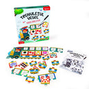 Trenuletul vesel: Numere, Forme & Culori este un joc educativ progresiv care vine sa-l ajute pe copil sa invete numerele si cantitatile, sa deseneze numerele si formele, invatand simultan culorile de baza. Copilul gaseste mai intai piesele cu numere conectandu-le la locomotiva trenului,apoi, recunoaste numarul si incearca sa gaseasca cantitatea corecta, adaugand a doua piesa cu puncte colorate. In cele din urma, conform culorii punctelor, copilul incearca sa gaseasca forma corecta care are conturul de aceeasi culoare. Continut: 5 cartonase cu numere, 10 piese de puzzle cu cantitati si culori si 10 piese de puzzle cu forme, 1 manual si 1 marker lavabil. Varsta recomandata 3-6 ani. Valori dezvoltatea - abilitati cognitive, miscarile fine ale mainilor, memoria, autonomia.