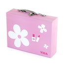 - Micutele domnisoare cochete vor iubi pe loc acest incantator set de cosmetice din lemn, care le va pune la dispozitie tot ceea ce este necesar pentru a se infrumuseta, pe ele sau papusile preferate.