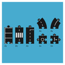 - Fiecare set dispune de segmente de drum flexibile, usor de conectat. Drepte, curbe, locuri de parcare, trasee giratorii, intersectii si multe alte piese, pot fi combinate si conectate dupa imaginatia copiilor, pentru a crea o multime de variante de trasee.