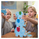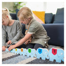 - Copiii pot stivui simpaticii elefanti din lemn intr-un turn inalt, pot incerca sa-i echilibreze in diferite combinatii, ii pot aseza intr-un sir de la mare la mic, tinandu-se de codite sau ii pot aseza ca piesele unui puzzle.