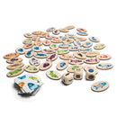 - Jocul include: 56 de piese din placaj imprimate cu pestisori, 56 de carduri, zaruri din lemn si un saculet de depozitare din bumbac.