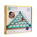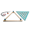 - Jocul de coordonare de la BS Toys consta dintr-un cadru din lemn, o placa de joc triunghiulara din lemn cu doua fete imprimate diferit, omuletul Ralf, un colac de salvare cu franghie.