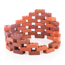 - Setul contine 60 de caramizi in miniatura, realizate din cauciuc termoplastic (TPR) si interior metalic, in patru nuante de maro, care copiaza si reproduc caramizile reale, in ceea ce priveste forma, culoarea si distributia greutatii.
