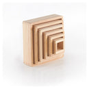 - Setul contine sase blocuri patrate de dimensiuni crescatoare, cu rame din lemn masiv de esenta tare, ce incadreaza ferestre acrilice transparente, in culori vii.