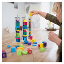 - Copiii pot folosi cele 12 carduri de provocare, cu diferite niveluri de dificultate sau isi pot construi propriile turnuri colorate.