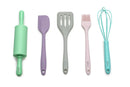 Încurajeaza-ti copilul sa devina un mini chef cu setul nostru de 5 piese! Perfect pentru micii pasionati de gatit si pentru parintii curajosi care sunt gata sa isi petreaca timpul in bucatarie alaturi de cei mici. Chiar daca stii ca va urma un mic haos, tu si copilul vostru veti avea multa distractie gatind si coacand impreuna. Acest set contine instrumente perfecte pentru mainile mici: un mini sucitor, un whisk din silicon, o spatula din silicon, o perie de baste din silicon si o spatula din silicon.