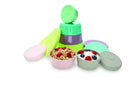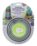 Set 6 recipiente hrana bebe, Melii, model turn Recipientele noastre din silicon, cu capac pentru asezare si imbinare, sunt recipiente alimentare care se pot suprapune intr-un turn distractiv. Ele se...